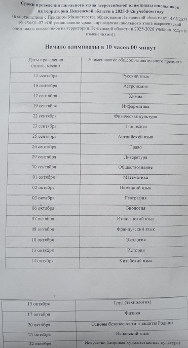 Приказ Управления образования города Пензы № 159-оп от 29.08.2025 "О проведении школьного этапа всероссийской олимпиады школьников на территории города Пензы в 2025/2026 учебном году"